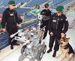 21日午後、済州西帰浦(チェジュ・ソグィポ)市のW杯競技場で行われる韓国とイングランドの親善試合を控えて、警察特殊部隊が爆発物処理用のロボットと警察犬まで動員してパトロールするなど、爆発物テロなどに備えて安全点検を行っている。