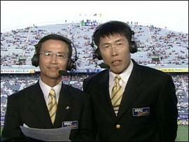 한편 축구 어록으로 유명한 송재익 캐스터는 이날 역시 보신각 타종하는 듯한 헤딩슛(한국골 당시), 후지산을 무너뜨린 도쿄대첩의 영웅(이민성)심판이 오늘은 옐로카드를 안갖고 나온 것 같다 등의 현란한 애드리브를 과시했다. 그러나 일부에서는 송 캐스터의 과장된 멘트가 오히려 반감을 불러일으켰다는 비판도 제기됐다.