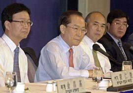 한나라당 이회창 대통령후보가 22일 서울 한국프레스센터에서 열린 관훈클럽토론회에서 패널들의 질문에 답하고 있다.