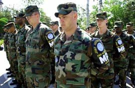 板門店の国連共同警備区域で、26日、米軍兵士が米国のメモリアル・デー(戦没将兵追悼記念日)を記念して、朝鮮戦争で戦死した兵士を追悼している。