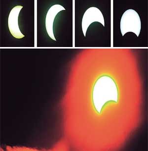달이 해의 일부를 가리는 부분일식 현상이 10, 11일 미국과 필리핀, 인도네시아, 멕시코 등 극히 일부 국가에서 관측됐다. 최장 1시간가량 진행된 이번 일식은 미 서부 캘리포니아 등 일부 지역에서 해의 94%까지 가리는 화려한 우주쇼가 펼쳐졌다. 사진 위는 대만에서 관측된 일식. 아래는 필리핀에서 관측된 부분일식 연속 촬영 사진.