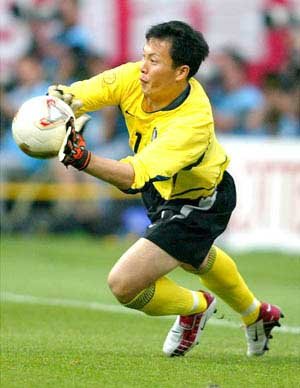 「韓国を4強に導いたくもの手」22日、W杯準々決勝、韓国—スペイン戦。PK戦で韓国のGK李雲在(イ・ウンジェ)がスペインの4人目のキッカー、ホアキンのシュートをセーブしている。李雲在は、前後半と延長の120分間、スペインのシュートを何度も好セーブで阻み、この日の勝利をけん引した。