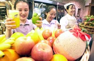 무더운 여름엔 갈증도 식히고 건강에도 좋은 생과일 주스가 제격. 현대백화점 서울 신촌점은 멜론과 키위 바나나 등을 재료로 한 생과일 주스 코너를 마련해 고객들을 유혹하고 있다.