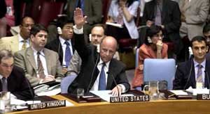 ネグロポンテ米国連大使が先月30日、国連本部で開かれた安全保障理事会で、ボスニア国連平和活動(PKO)を6ヵ月延長する案に対して、手を挙げて反対意思を示している。