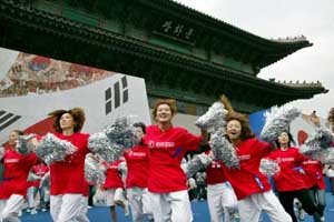 2日、光化門(クァンファムン)一帯で行われた「W杯4強進出と成功開催を祝う国民大祝祭」に参加したダンサーたちが予行演習をしている。