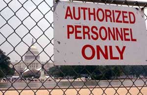 米国の独立記念日(4日)にさらなるテロ発生の可能性が懸念されている。2日、ワシントンの議事堂周辺に張り巡らされた鉄条網に「関係者以外立ち入り禁止」という表示板が掛かっている。