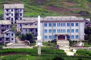 朝鮮民主主義人民共和国(北朝鮮)の金日成(キム・イルソン)主席の死去8周忌を翌日に控えた7日、京畿道坡州市(キョンギド・パジュシ)の都羅山(トラサン)展望台から眺めた北朝鮮側の光景。朝鮮労働党庁舎の前に、北朝鮮住民たちが集まっている様子から、緊張感は全く感じられない。
