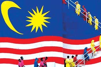 独立45周年のマレーシアの大型国旗