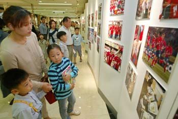 W杯4強神話の感動を再現した「オ!必勝コリア」写真展が20日まで、現代(ヒョンデ)デパートのミアリ店で開かれる。15日、デパートを訪れた家族連れの市民たちが写真展を鑑賞している。
