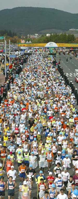 2002東亜慶州オープンマラソン大会(東亜日報社・東亜マラソン卵育成財団主催)が27日、慶州循環コースで開かれ、1万255人のマラソンマニアが参加した。