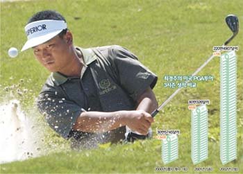 「タンク(戦車)」の異名を持つ崔京周(チェ・ギョンジュ、32、シュペリアー・テーラーメード)が11日一時帰国した。ここ1年間、米国でし烈な「戦争」を戦いながら積もった疲労をいやし、今月21日に日本の宮崎で開かれる日本PGAツアーの2002ダンロップ・フェニックストーナメント(賞金総額2億円)に備え、体調を調整するためだ。またゴルフ選手としては朴セリ、金美賢(キム・ミヒョン)に続き3人目に体育勲章猛虎章を受ける。