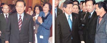 ハンナラ党の李会昌(イ・フェチャン)大統領候補は15日、ソウルのホテルで開かれた幼児教育の支持者の集まりに参加し(左)、民主党の盧武鉉(ノ・ムヒョン)大統領候補は同日、民主党本部で記者会見を行い、朝鮮民主主義人民共和国(北朝鮮)の核問題解決方策などを提示した。