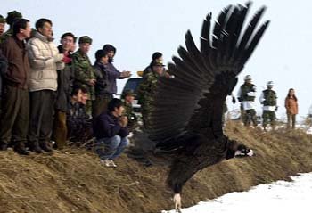 9日、江原道鉄原郡(カンフォンド・チョルウォングン)の中部前線の民間人出入り統制区域内の鉄原平野で、冬の渡り鳥にえさを与える行事が開かれた。参加者たちが、気力がつきて治療を受けてきたワシ(天然記念物第243号)を自然に帰している。
