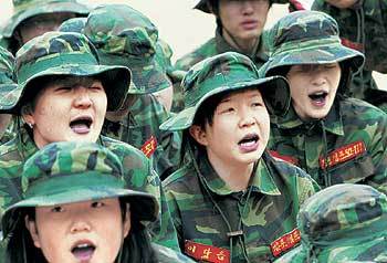 今年で7年目を迎えた海兵隊の冬季キャンプに、女性志願者たちが押しかけている。18日、京畿道金浦市(キョンギド・キムポシ)のある海兵隊の訓練場で、女性の訓練生たちが、ときの声を上げている。