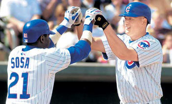 米アリゾナ州メサのホホカム・パークで20日開かれたアナハイム・エンゼルスとの「スプリット・スクォード」(一つのチームが二つに分かれて別々に試合を行うこと)。エンゼルスは昨年のワールドシリーズのチャンピオン。大リーグ最高のスラッガー、ソーサに続き「4番・一塁」で出場した崔は1回1死1、2塁のチャンスを空振り三振で逃した後、3回1死1塁で第2打席に入った。