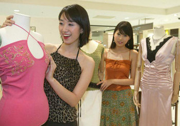 昼間の気温が大きく上がるや、6日、ソウル新世界(シンセゲ)百貨店の江南(カンナム)店が、「袖なし服」の売場を設けて女性顧客たちを迎えている。袖なし服をお目見えしているモデルたち。