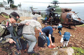 長期間の内戦が続いているアフリカ西部のリベリアの首都モンロビアで、政府軍と反政府武装勢力の間で銃撃戦が起き、9日、フランス軍がヘリコプターで現地の各国外交官と職員たちを避難させている。