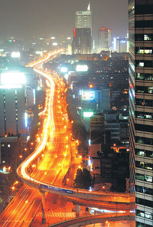 26日夜、車の列がソウル都心の清渓(チョンゲ)高架道路を疾走する姿を、ソウル中区光橋(チュング・クァンギョ)の南端からBシャッター撮影で捉えた。清渓高架道路は7月1日から始まる清渓川復元工事を前に、開通34年にして姿を消す。