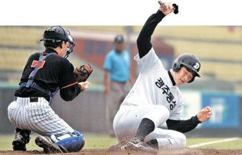第57回黄金獅子旗全国高校野球大会(東亜日報社と大韓野球協会の共同主催)が開かれる東大門(トンデムン)野球場が連日、名勝負で熱い。29日群山(クンサン)商業高校は「逆転の名手」らしく、延長戦の末にドラマティックな逆転勝ちを演出しており、光州(クァンジュ)トンソン高校と大田(テジョン)高校も猛打をふるって2回戦に進出した。