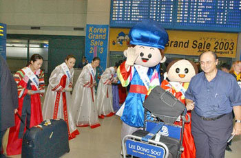 4日からソウル、釜山(プサン)、慶州(キョンジュ)、済州(チェジュ)などのデパートと免税店が外国観光客に割引価格で販売する「コリアセール2003」行事を開始した。韓国観光公社は、仁川(インチョン)国際空港の入国ロビーに韓国伝統服の韓服(ハンボク)を装った人形人間チョロンイとセクトンイが外国観光客たちを迎えている。この行事は、来月3日まで続く。