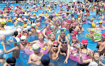 梅雨明けした25日、ソウル瑞草区良才洞(ソチョグ・ヤンジェドン)教育文化会館野外プールは、夏休みを迎えて、暑さを凌ぎに寄り集まった子どもたちでごった返している。