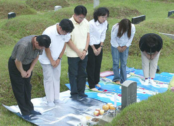 秋夕(チュソク・旧盆、9月11日)連休が10日後に迫った31日、京畿道坡州市広灘面(キョンギド・パジュシ・グァンタンミョン)ヨンミ里の公園墓地で一家族が墓参りをしている。