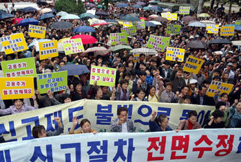 12日、ソウル九老区九老(クログ・クロ)6洞の朝鮮族教会前で中国同胞1000人あまりが政府の不法滞在者対策の修正を要求して集会を行っている。