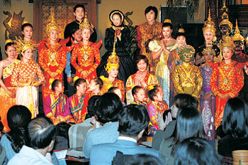 15日、ソウル江南区(カンナムグ)オリエンタルレストラン「シルクスパイス」で、金ソクフン、金ソンギョンらのブロードウェー・ミュージカル『王様と私』出演陣が観客の前で華麗な衣装をまとい、制作発表会を行っている。