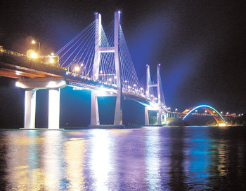慶尚南道南海郡昌善面(キョンサンナムド・ナムへクン・チャンソンミョン)と泗川市三千浦港(サチョンシ・サムチョンポハン)をつなぐ昌善三千浦大橋の5橋梁のうち、三千浦大橋と草養(チョヤン)大橋の景観照明が夜の海を華やかに染めている。この照明は光のトンネルと虹を象徴する。