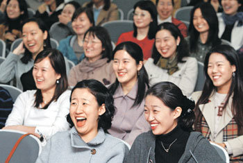3日、ソウル西大門区(ソデムング)の梨花(イファ)女子大では、労働部主催で「2003ビジョン・女性就職情報交流会」が開かれた。交流会には就職活動を準備している女性たちが参加し、面接イメージメーキングのための講義を聞きながら楽しい表情をしている。