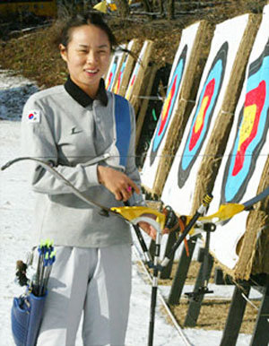 来年はアテネ五輪が開かれる。ユン・ミジンは五輪のアーチェリー史上初の記録に挑戦しようとしている。2回連続の五輪2冠王。世界最強の韓国アーチェリーだが、いまだに誰もこの記録を達成できていない。「元祖」アーチェリー女王のキム・ジンホ(韓国体育大学教授)も、「神弓」のキム・スニョン(醴泉郡庁)も2回連続五輪に出場して個人・団体2冠王は果たせなかった。