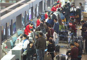 年末を控えて外国に出国する旅行客が急増した。24日午前、旅客機の搭乗手続きをする海外旅行客でごった返す仁川(インチョン)国際空港の出国ロビー。