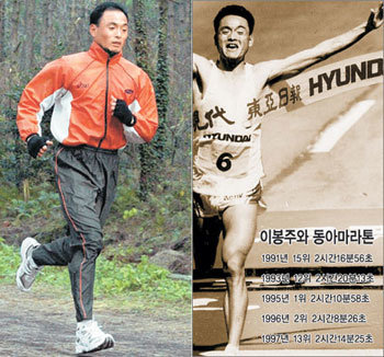 李鳳柱にとって東亜マラソンは心の故郷。91年初めて出場して15位、93年12位に低迷したが、95年に優勝してマラソン看板スターの仲間入りを果たした。96年大会では2時間8分26秒で2位を占めた後、同じ年に開かれたアトランタ五輪では銀メダルを獲得した。