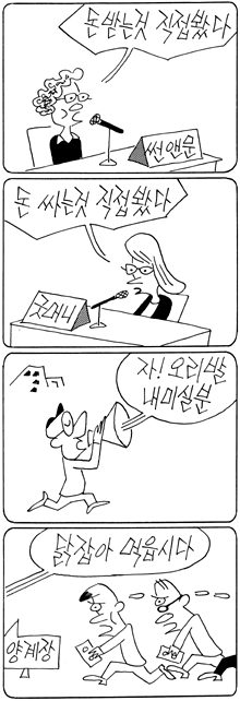 3.さあ!アヒルの足を出す方は?(しっぽを出す)(訳注:とぼけるの意)