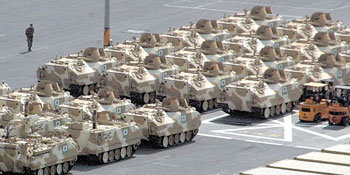 来月末、イラクへ増派される予定であるイラク平和再建師団(ザイトン部隊)が使う装甲車が、16日釜山(プサン)港の埠頭に整列してある。これらの装甲車は貨物船で現地に輸送される。