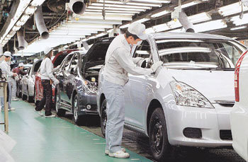 同じ資本と労働を投資しても、生産品の量と質が相対的に劣る低生産性の問題は、韓国が国内総生産(GDP)1兆ドル国家になるためには、どうしても解決しなければならない課題だ。職員の情熱と経営陣のリーダーシップで高い生産性を築いてきた日本トヨタ自動車の工場で、職員が作業に熱中している。