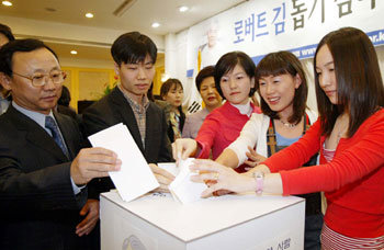 5日、ソウル江南区狎鴎亭洞(カンナムグ・アプクチョンドン)ポップグリーンホテルで、ロバート・キム助け合い全国民支援センターの発足式が開かれた。同団体は、国家機密漏洩の疑いで、米国連邦刑務所に収監されているロバート・キムを助けるため設立された。イベントへの参加者たちが義援金を集めている。
