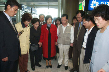 イラク武装勢力に8日拉致されてから7時間ぶりに釈放されたホ・ミンヨン牧師一行7人が同僚牧師2人と一緒に14日仁川(インチョン)空港を通じて帰国して感謝の祈りを捧げている。彼らは帰国声明で「国民の皆様にご心配をおかけして申し訳なく、大使館関係者らに感謝の言葉を申し上げる」と話した。