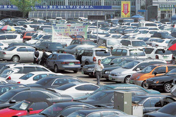 続く内需低迷の影響で中古車市場も苦境にさらされている。中古車の販売商人らは最近新車割引販売まで重なって、販売状況が一層良くないと話す。20日中古車を求める人がほとんどいなく、閑散としたソウル長安坪(チャンアンピョン)中古車市場。