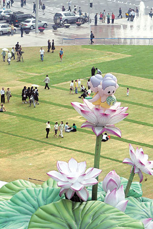 お釈迦様の誕生日(26日)を控えた11日、ソウル市長前の広場に「平和と分かち合いの灯」が設置された。この造形物は蓮華の上に子供のお釈迦様が立っている姿をかたどったもの。