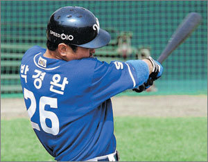 박경완은 16일 수원 현대전 4회 무사 2루에서 상대 선발 피어리의 141km짜리 직구를 받아쳐 좌월 2점 홈런을 때렸다. 시즌 17호로 브룸바를 1개차로 제치고 홈런 부문 단독 선두 복귀.