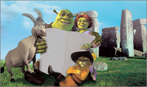 全世界で1兆ウォンを超える興行成績を記録したアニメーション「シュレック」(01年)の続編である「シュレック2」が18日公開される。「シュレック」はハリウッドが流布した神話に対する最も強力な挑戦のひとつだった。前編のラスト・シーンに登場した緑の怪物シュレック(声の出演、マイク・マイヤーズ)とデブのお姫様プリンセス・フィオナ(キャメロン・ディアス)のハッピー・エンドは、「昔、昔、あるところに」で始まってすてきな王子様とかわいいお姫様の甘いキスで幕を下ろす「ディズニー神話」からの劇的な反転であり、美醜と幸福を結びつけてきた固定観念に対する痛烈な反撃だった。戻ってきた「シュレック2」が気になる。