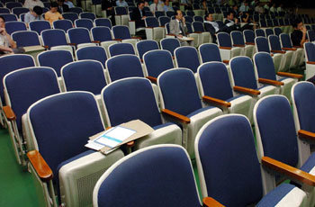 「がらんとした公聴会場」。新行政首都建設の推進委員会が設けた地方巡回公聴会が26日、蔚山(ウルサン)商工会議所の大会議室で開かれた。同日の公聴会は、傍聴客が約80人に過ぎず、市民の無関心の中で進められたが、首都移転に反対する意見が多く出された。