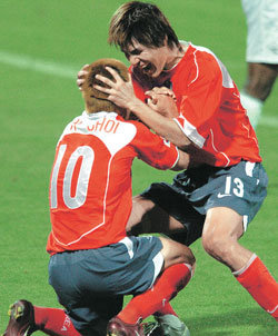 18日、ギリシャ・テサロニキ・カフタンジョグリオスタジアムで行われた04アテネ五輪男子サッカーA組組別予選第3戦。韓国はマリと3—3の引き分けを記録して無敗(1勝2引き分け)でベスト8進出を決めた。マリとは勝ち点では同じだが、ゴール得失点差で立ち遅れて2位。