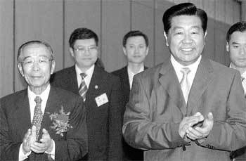 한국을 방문 중인 자칭린 중국 인민정치협상회의 주석(앞줄 오른쪽)이 28일 전국경제인연합회 주최 환영 오찬에 참가하기 위해 강신호 전경련 회장(앞줄 왼쪽)과 함께 서울 신라호텔에 들어서고 있다. 자칭린 주석은 방한 기간에 삼성전자 현대자동차 등에도 들러 경제협력 방안을 논의했다.