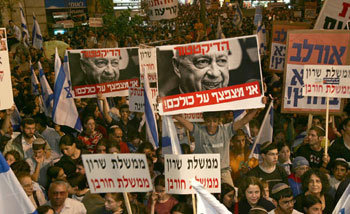 12일 이스라엘의 예루살렘 도심에서 아리엘 샤론 총리의 가자지구 철수안에 반대하는 수만명의 시민이 샤론은 독재자라고 적힌 포스터를 들고 대규모 시위를 벌였다. 샤론 총리는 이날 극우주의자들이 내전을 획책하고 있다고 비난했다.