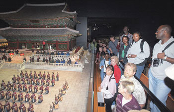 22日、ソウル松坡区(ソンパグ)ロッテワールド民俗博物館で、在韓米8軍とロッテワールドが毎月1回ずつ共同で主管する「韓国広報プログラム」に参加した在韓米軍と家族100人余りが朝鮮(チョソン)時代の生活ぶりに対する説明を聞いている。