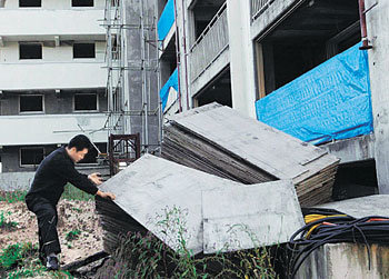 建設会社の資金難などで工事が中断したまま放置されている京畿道驪州郡(キョンギド、ヨジュグン)の賃貸マンションの建設現場。最近の景気低迷による建設会社の倒産や資金難で、工事を中断するマンション建設現場が続出している。