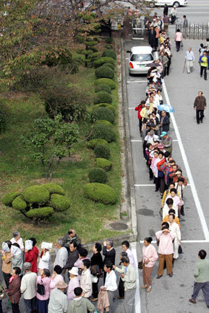 光州西区(クァンジュ・ソク)保健所は65歳以上のお年寄りたちを対象に18日、インフルエンザ予防注射を無料で接種した。同日、朝早くから保健所を尋ねたお年寄りたちが、長蛇の列をなして接種の順番を待っている。