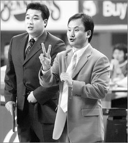 二人は現役のコーチング・スタッフの中で最長のコンビ。1999年、大宇(テウ)証券を率いていた兪監督が現代(ヒョンデ)所属だったイム氏を迎え入れたときから縁が始まる。今年で6年目。兪監督とイム氏はそれぞれ延世(ヨンセ)大学と慶熙(キョンヒ)大学を卒業して、選手時代、起亜(キア)と現代に入り、同じチームになったことは一度もなかった。